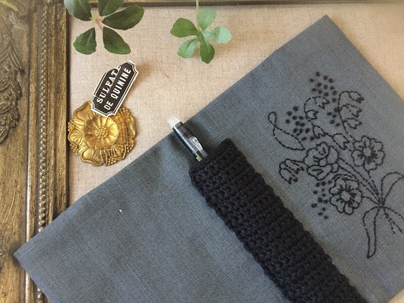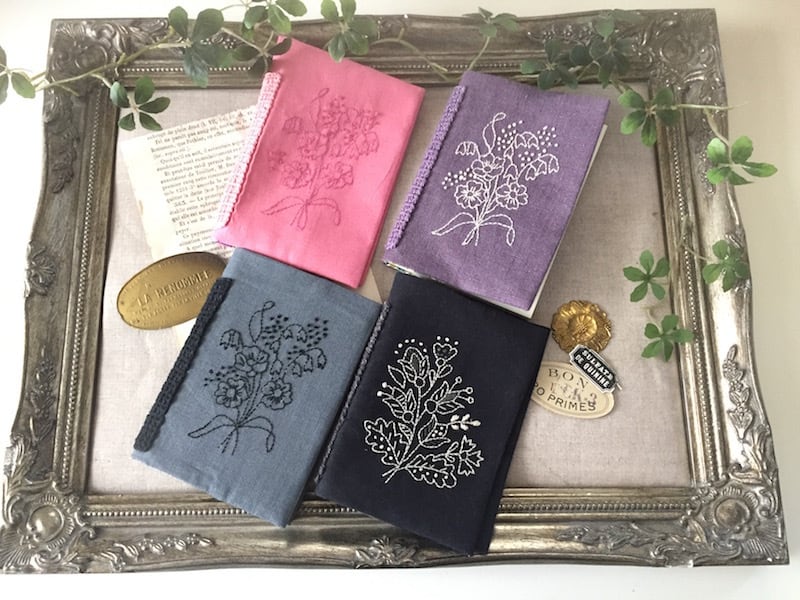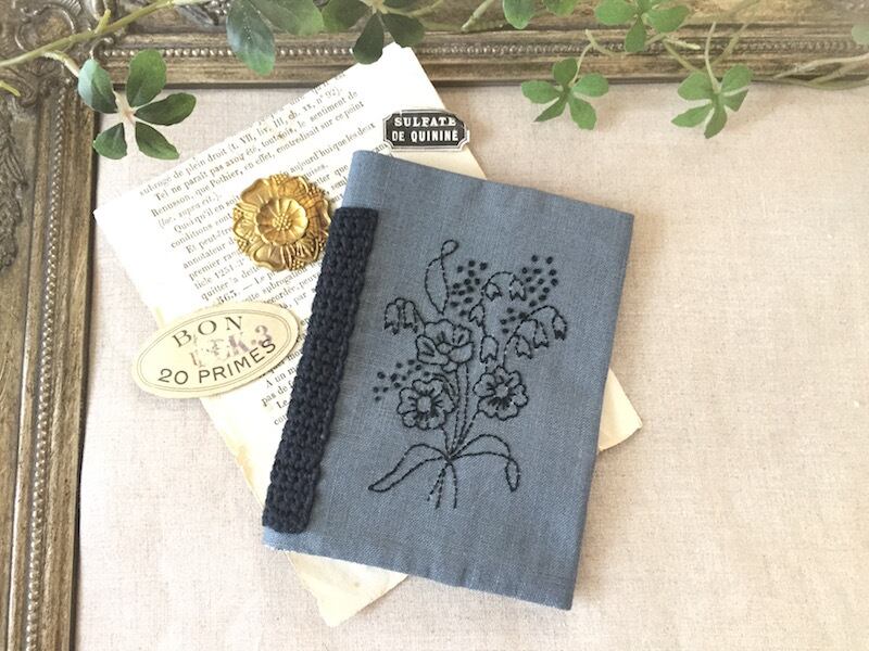 • 刺繍の手帳カバー(A6サイズ)グレー