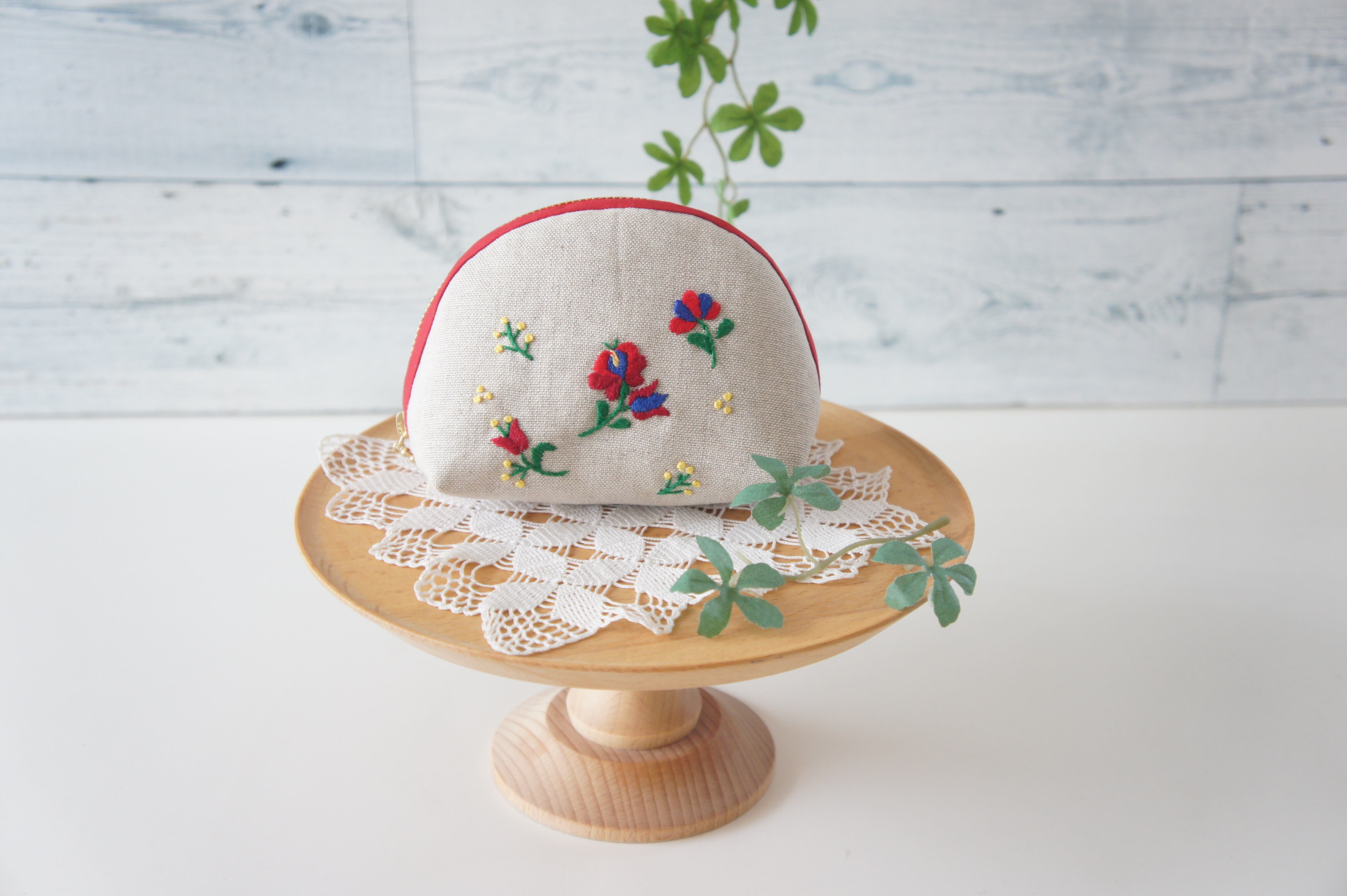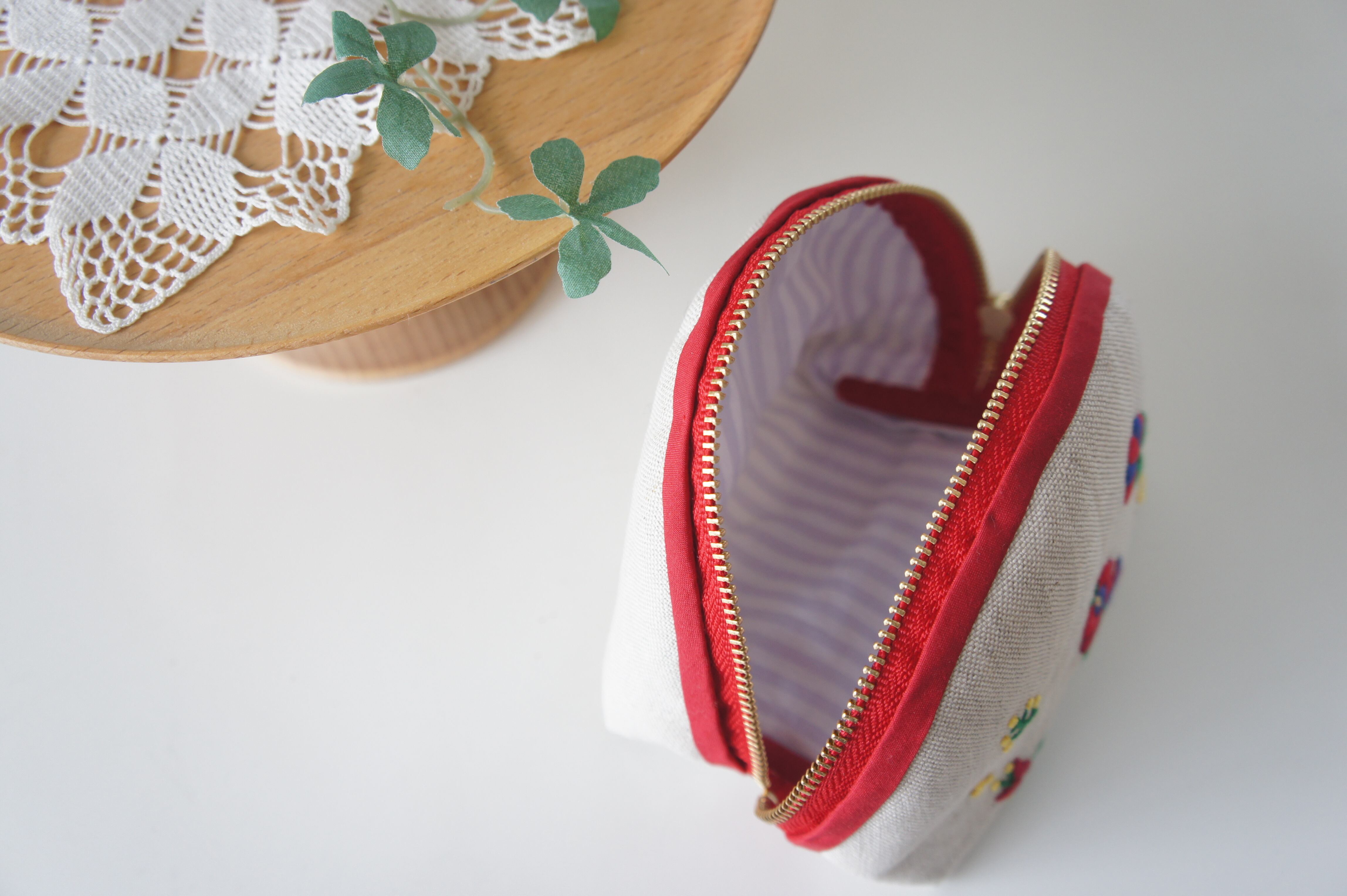 ■size:縦10cm×横11cm×マチ7cm 開閉しやすく中が見やすい半円型のファスナーポーチです。 マニキュアを6本入れても少し余裕があります。 充電器やイヤホン入れにもオススメです。 薄いキルト芯入りで、柔らかな手触りです。