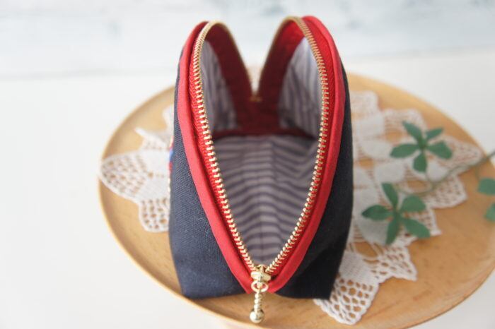 開閉しやすく中が見やすい半円型のファスナーポーチです。