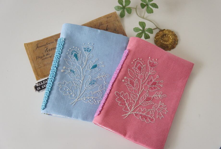 • 刺繍の手帳カバー(A6サイズ)ピンク