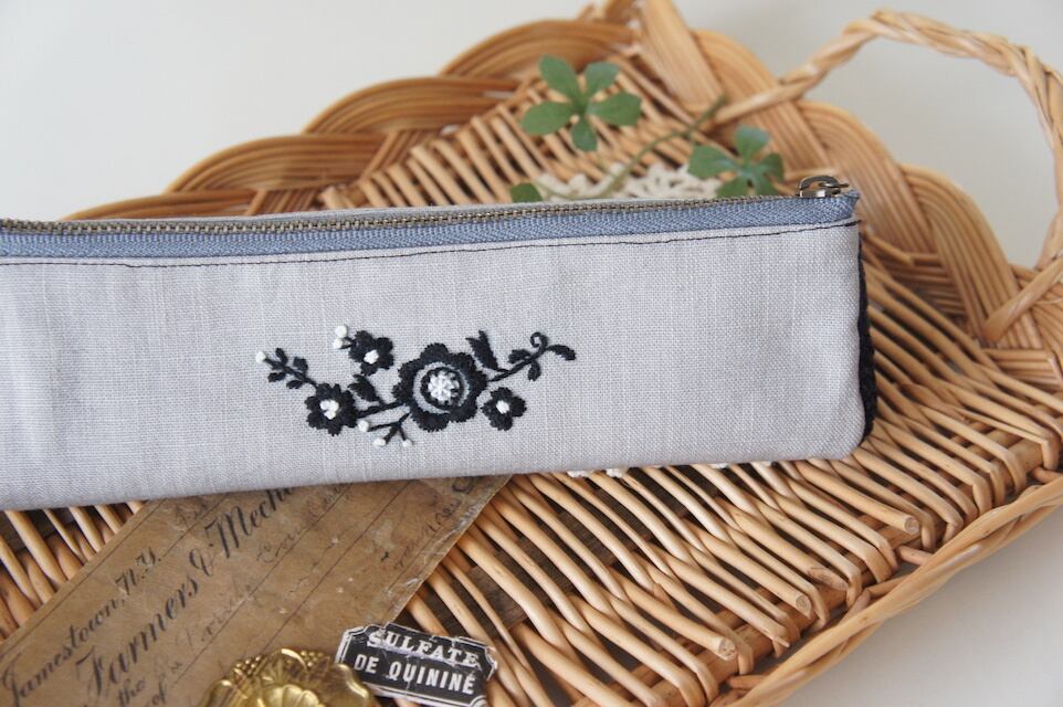 ハンガリー刺繍の図案を8番糸で刺繍しています。